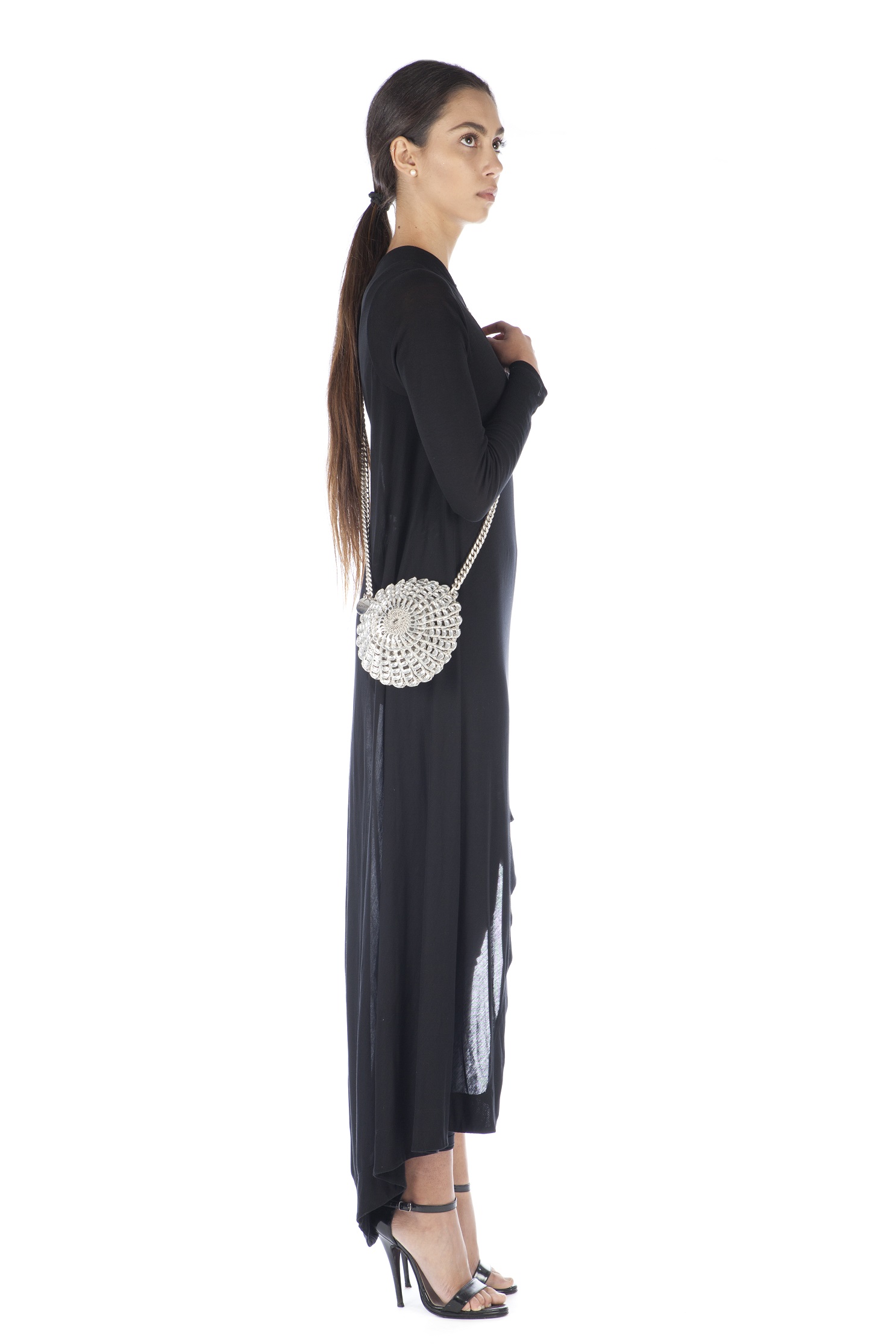 Il consiglio della designer: è una borsina di forma tonda, ideale per le occasioni glamour o semplicemente per tutte le volte in cui si desidera portare con sè solo l’essenziale. La tracolla lunga fa dimenticare di averla indosso.