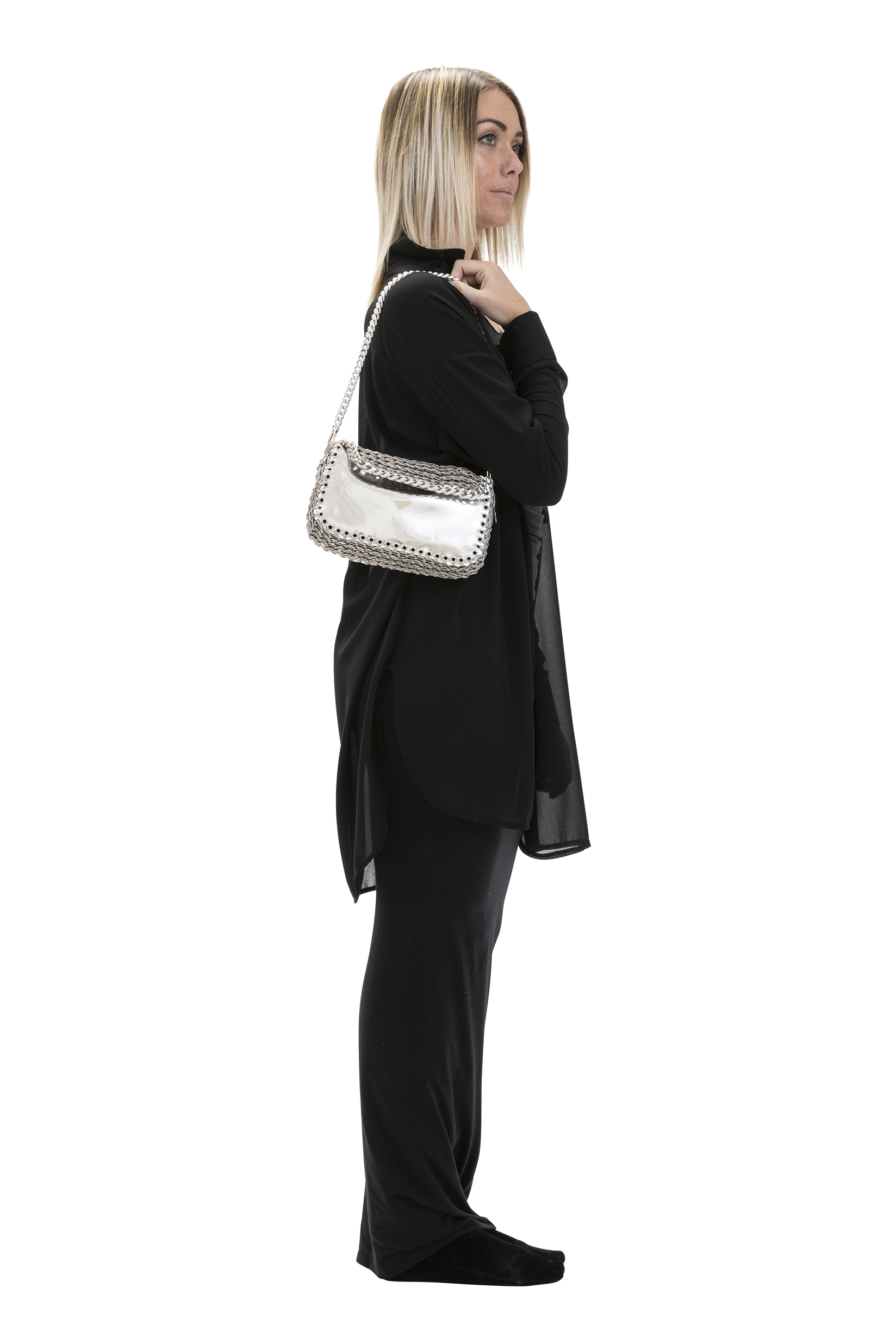 La tracolla è sempre in catena metallica argento (nickel free).