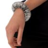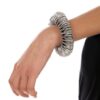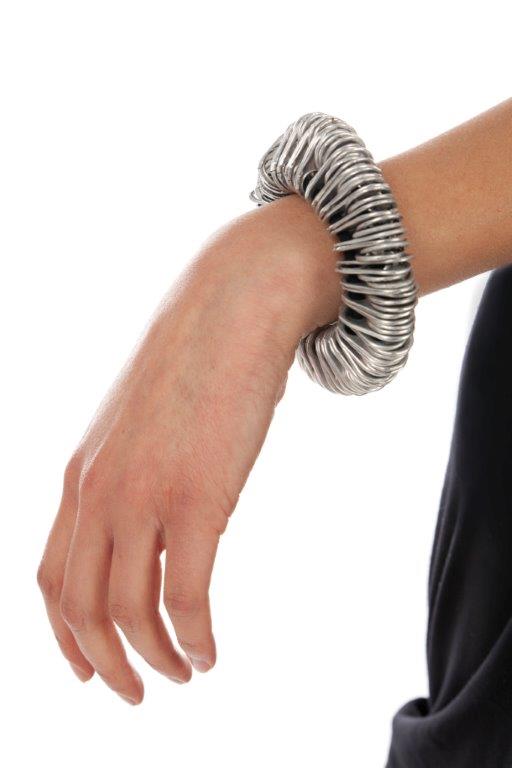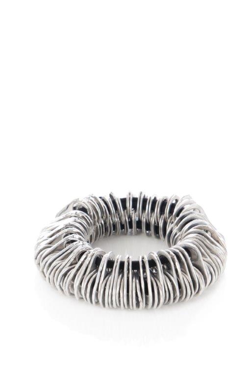 Braccialetto realizzato a mano con le linguette riciclate con la tecnica dell’uncinetto, utilizzando filo di colore grigio.