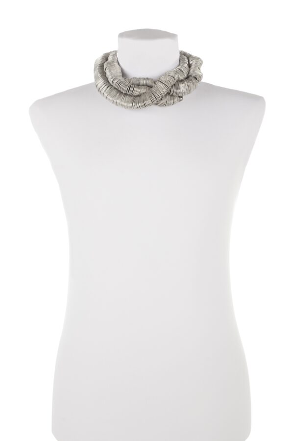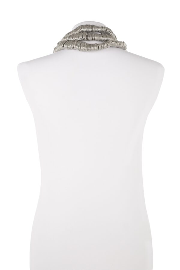 Il consiglio della designer: è un accessorio passepartout, ideale per tantissime situazioni, perfetta con un maglione di lana così come con un tubino rigoroso. La presenza al suo interno di un’anima elastica permette di giocare con la collana arrotolandola sul collo a proprio piacere.