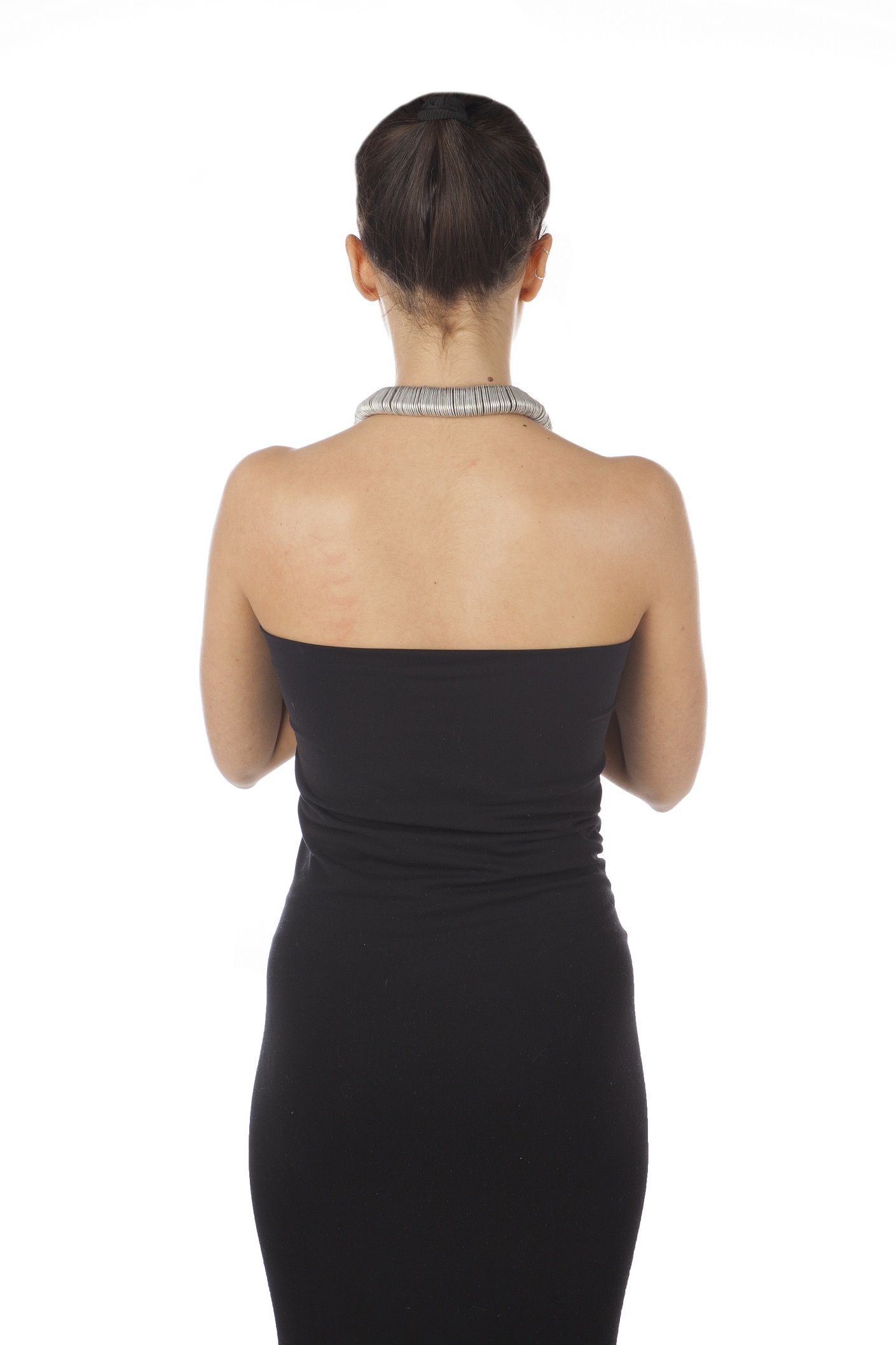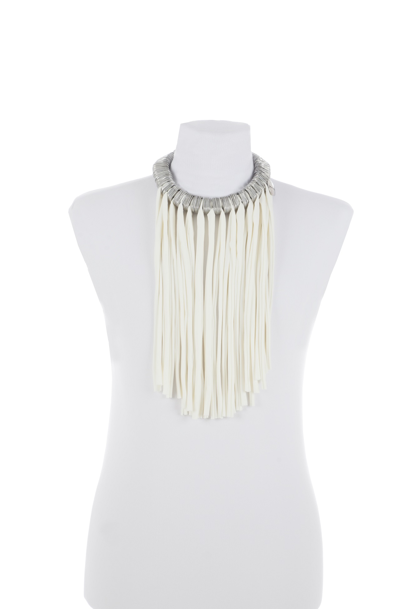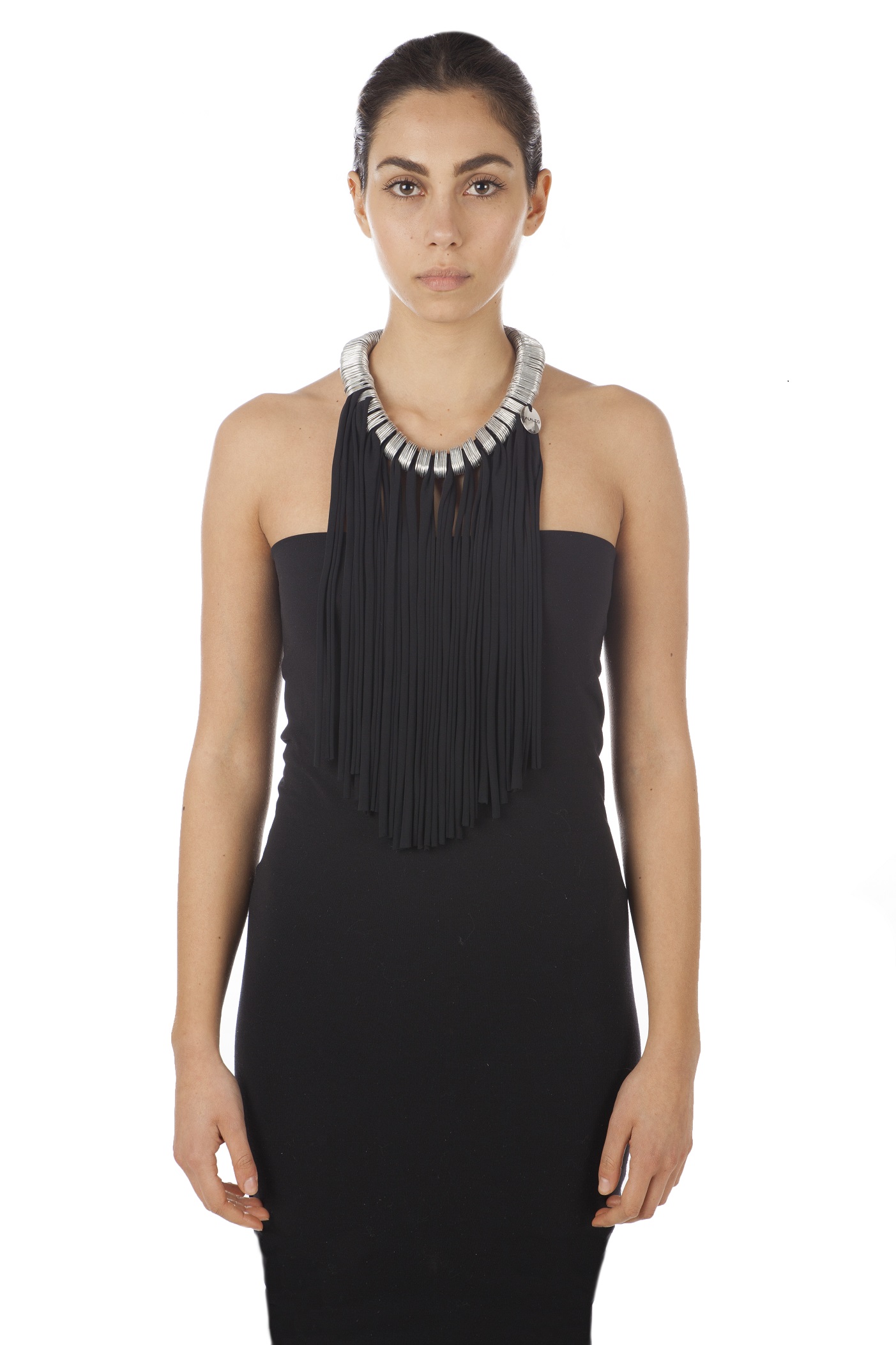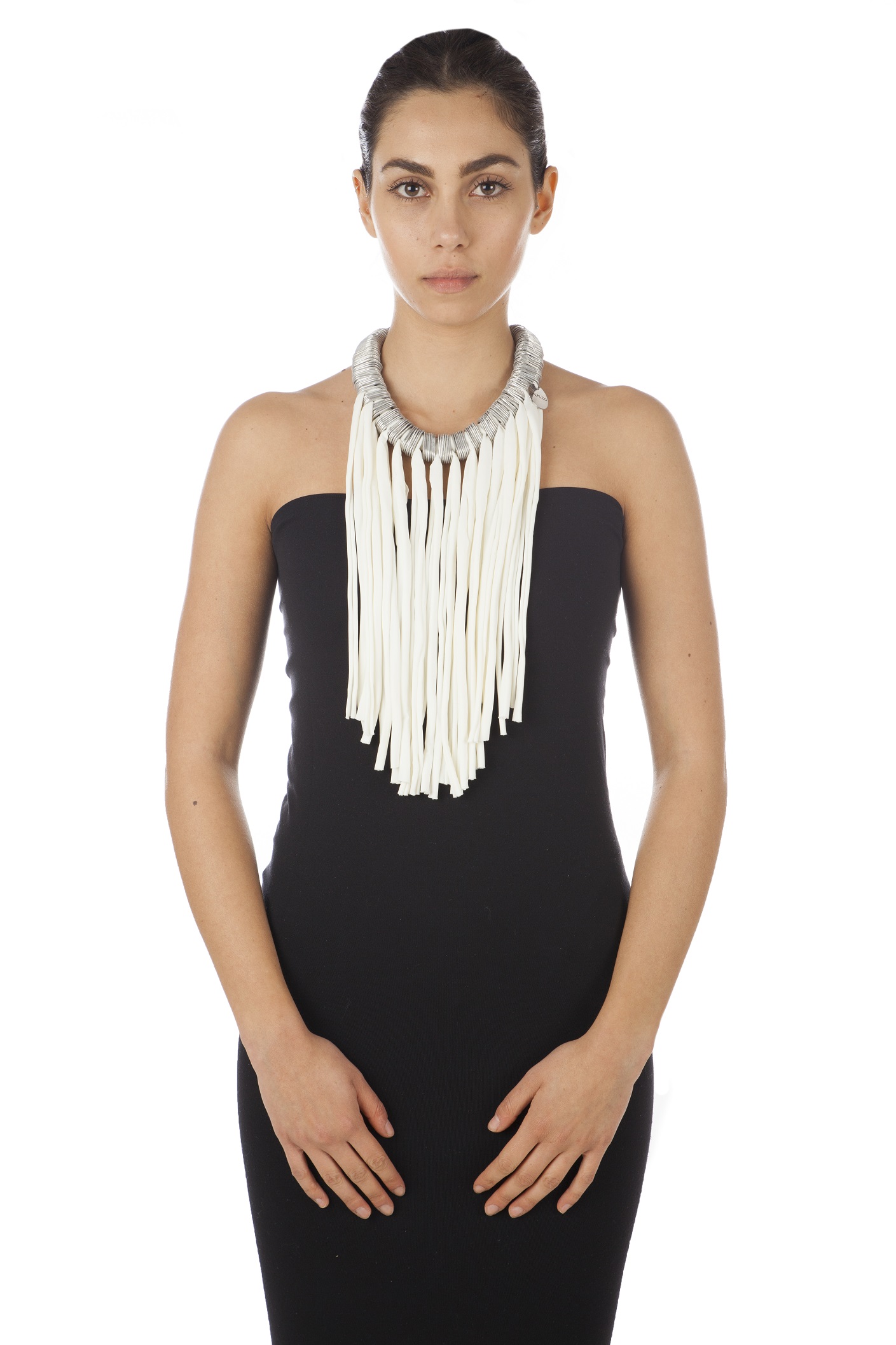 Il consiglio della designer: è una collana sorprendente che illumina ed esalta il viso. Con questa collana il vestito diventa l’accessorio.